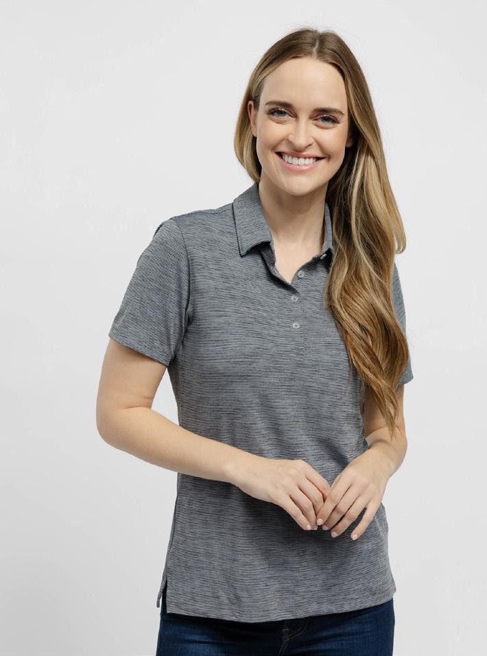 Very comfortable polo that is not super shiny. Also, the collar doesn’t “wilt” like some other polos. Overall, this polo worked great for our office.