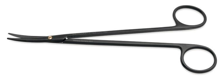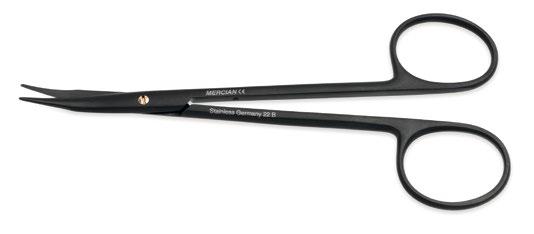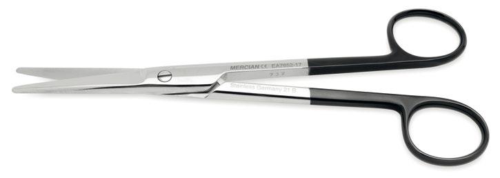 Mercian Easy - Cut Scissors, identified by the black ring bows, feature one blade with micro serrations, machined along the edge allowing the precise and controlled cutting of tissue structures and vessels.