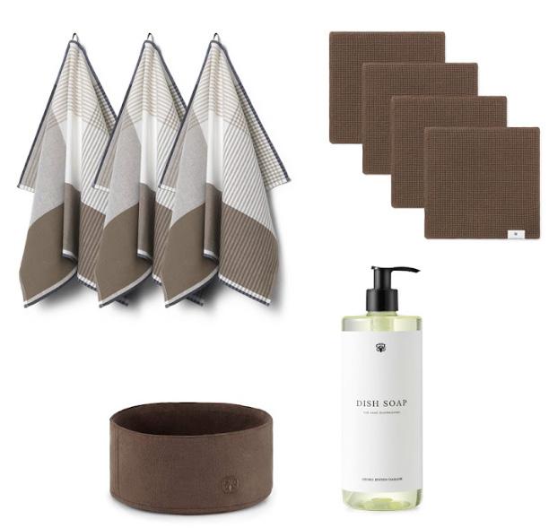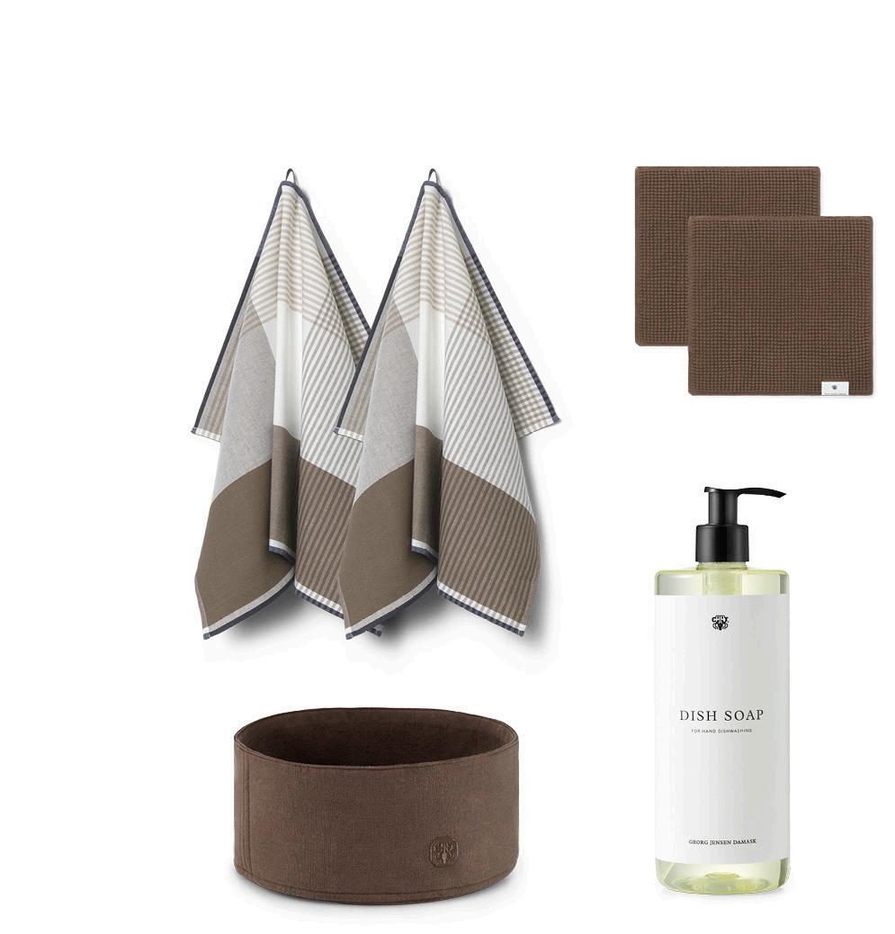 Georg Jensen Damask brødkurv, 2 stk viskestykker, 2 stk karklude & 1 stk opvaskemiddel