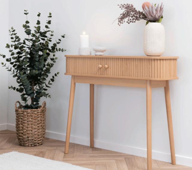 Konsolbord 90x30x80 cm i teak Gavepris. 800,-