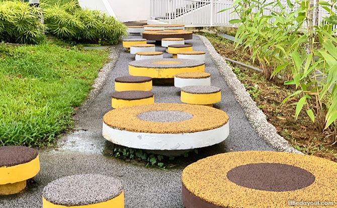 Stepping stones and climbing structures for children to have fun and challenge themselves!