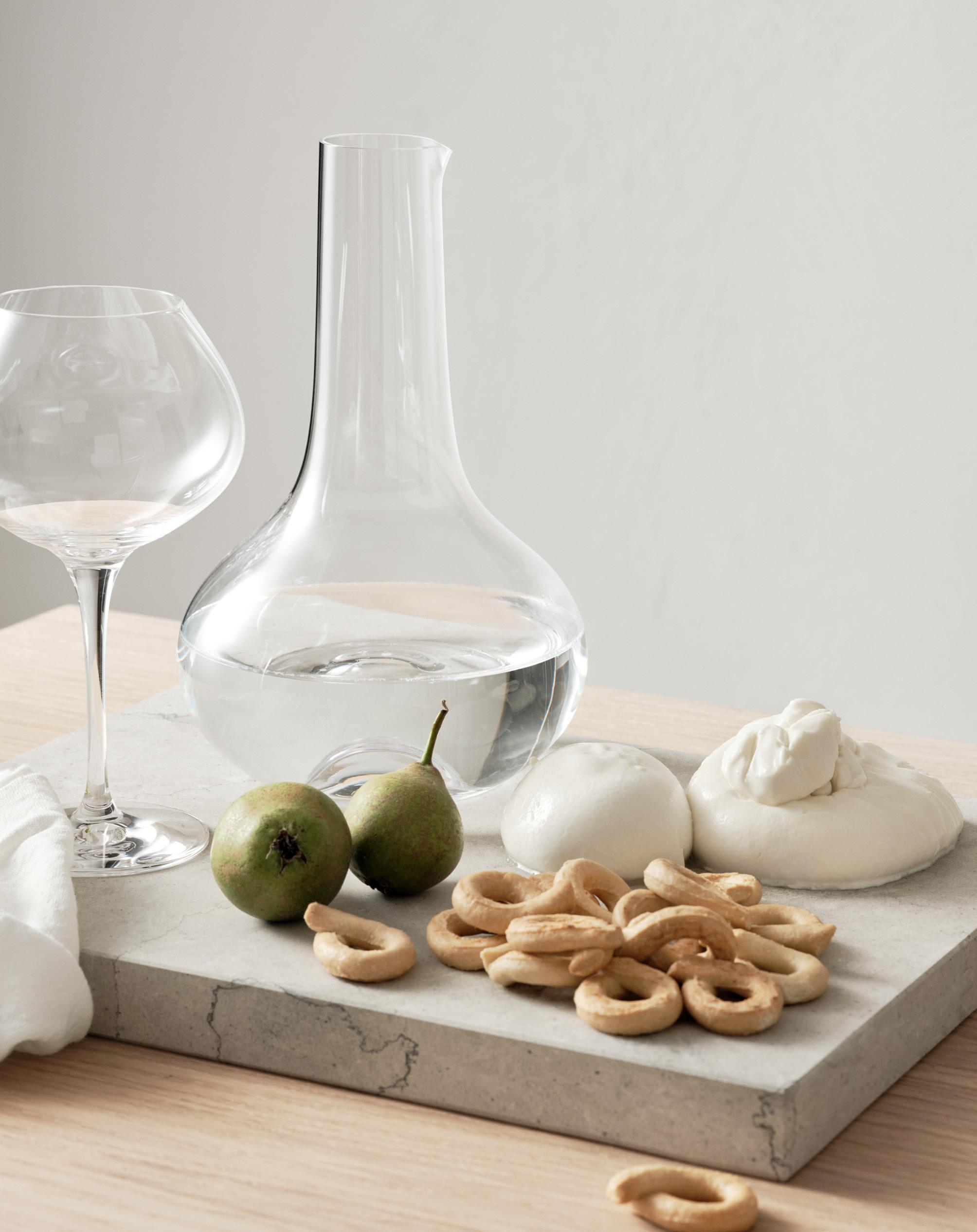 Karaffen passar för både kalla och varma drycker. Den patenterade hällkanten i rostfritt stål och silikon gör att karaffen är 100 % droppfri – innehållet hamnar i glaset och inte på duken. Flip-top-locket öppnas automatiskt och förhindrar att karaffens innehåll tar smak av annat i kylskåpet.