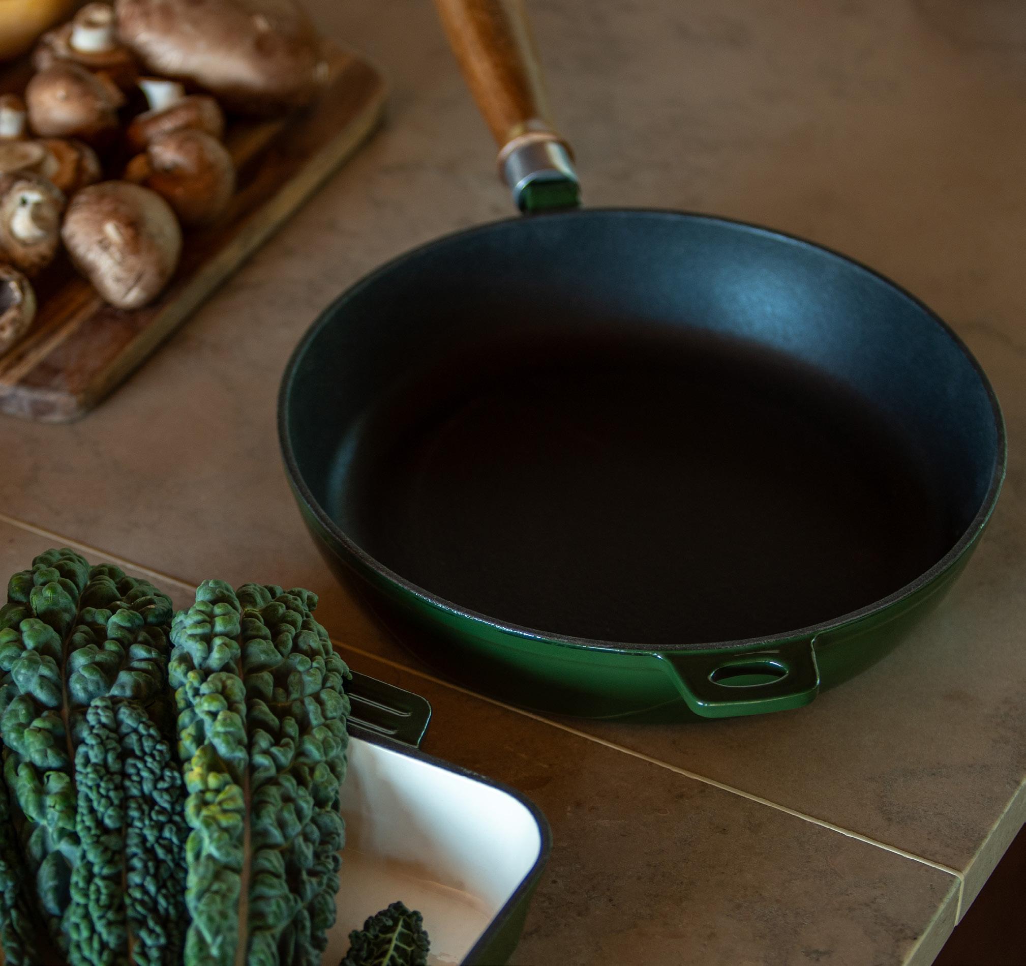 Denna stekpanna är gjort av kvalitativt gjutjärn, utrustad med ett akacia handtag. Gjutjärnsstekpannan kan användas till alla sorters matlagning, den kan även användas både på spisen och i ugnen då handtaget är avtagbart.