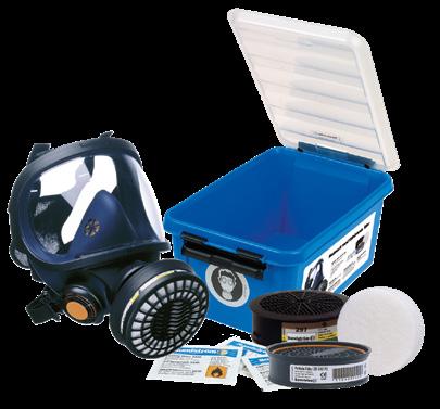 Innehåller: helmask SR200, förfilter 221, partikelfilter SR 510 P3, gasfilter ABEK 297, rengöringsservett SR 5226, förvaringsbox.