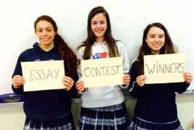 The contest always proves to be a fine opportunity or our students to demonstrate their writing and critical thinking skills. This year, three sophomores (now juniors) in the English Honors class took home awards. Annie Breidinger of HIllsborough won 1st place and received $1,000; Bianca Gonzalez of Colma achieved 6th place, earning $200; and Hayley Massucco of San Bruno won 13th place and $100. Congratulations to all three Mercy Burlingame winners!