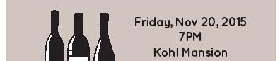 Join fellow wine lovers, vintners and connoisseurs for an evening of tasting and conversation at the Kohl Mansion. Over one dozen local wineries will be present.