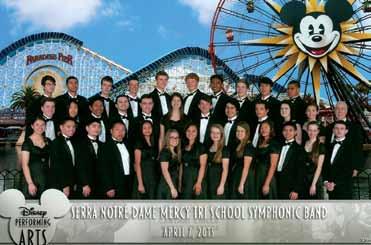 During spring break, members of Mercy Chorale, the Tri-School Symphonic Band, and Serra’s Chorus shared their musical talents at Disneyland. The students also participated in clinics. The choruses combined for a musical theater audition workshop, where they not only learned a song and dance combination from the musical Newsies, but were taught all aspects of what should go into an audition.