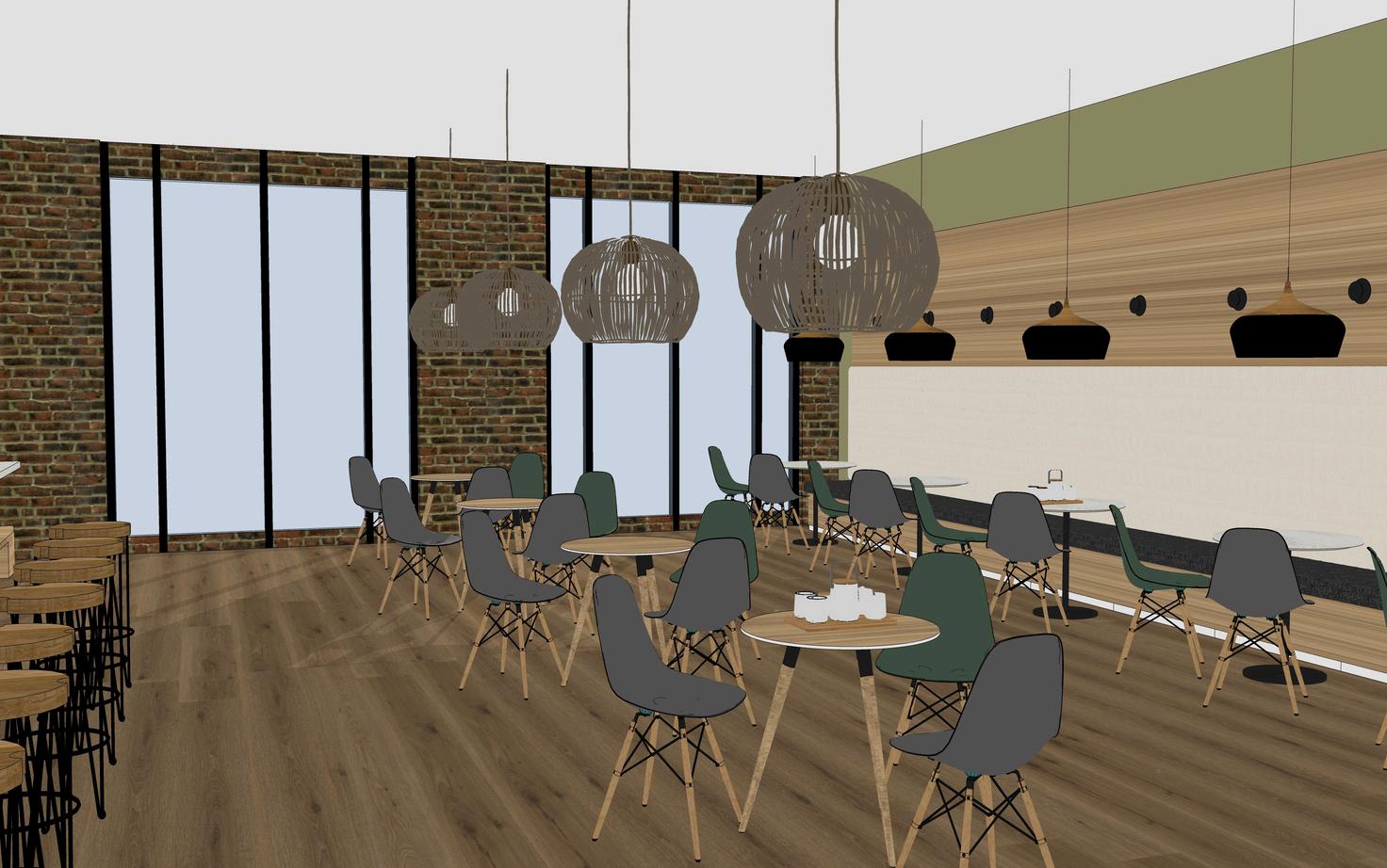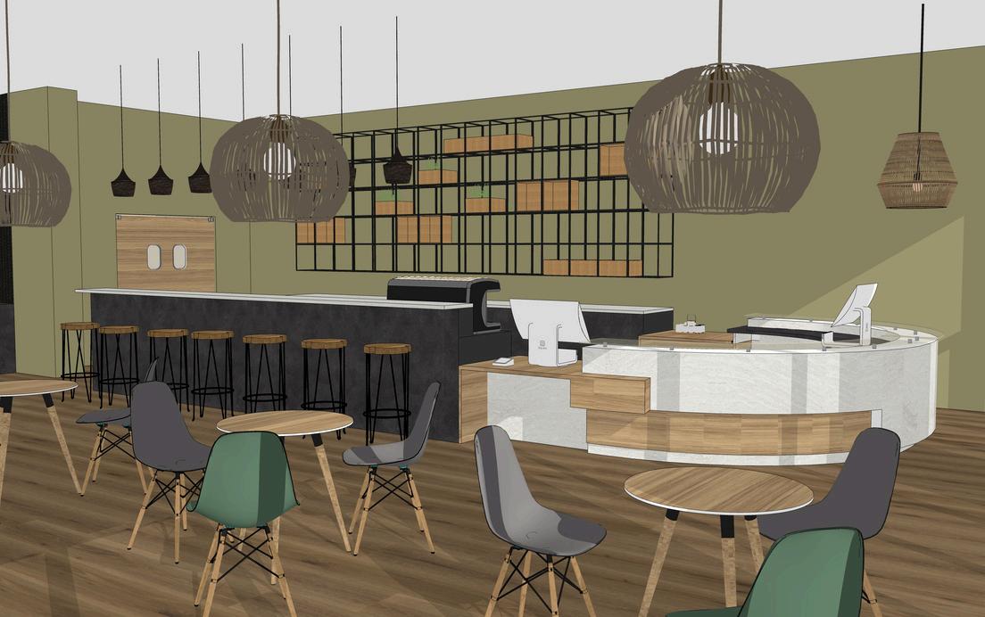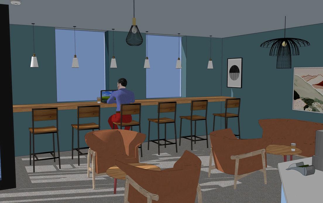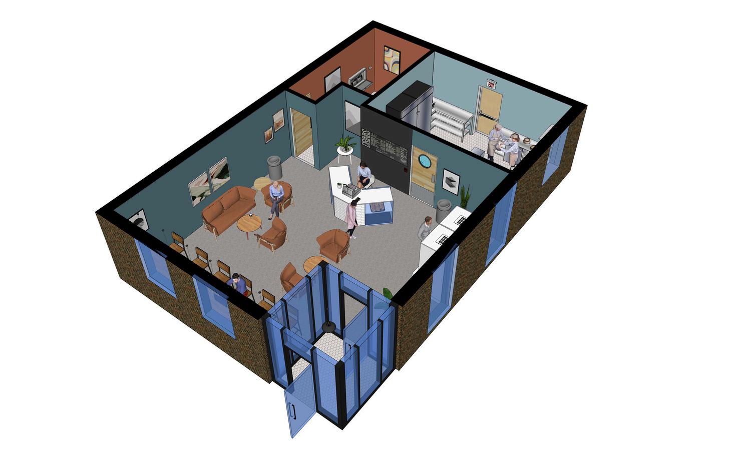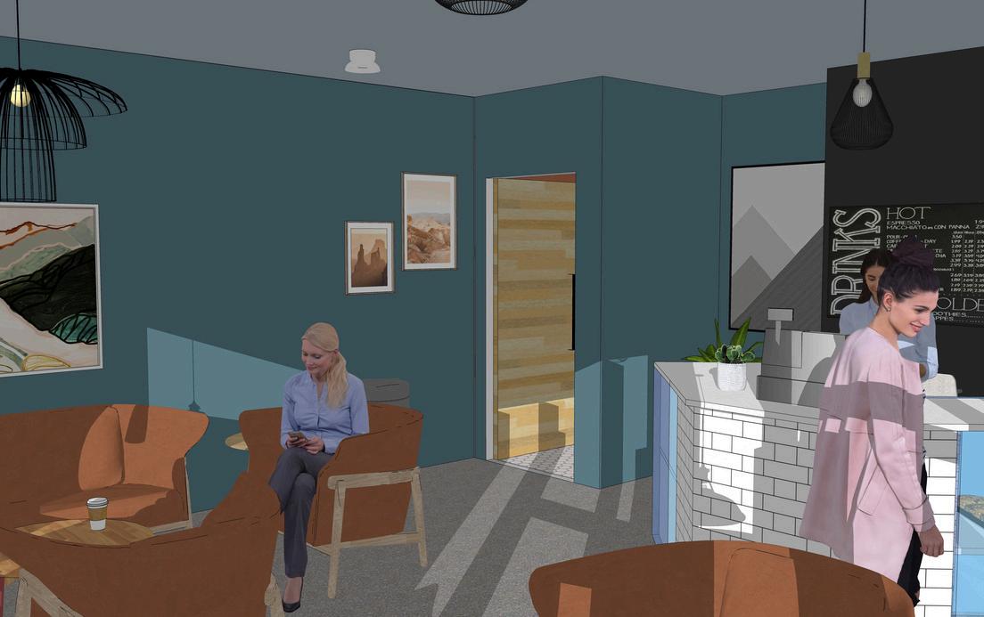This project showcases a small café with a commercial kitchen and ADA compliant restroom AutoCAD, SketchUp & material selection expertise were applied to the process.