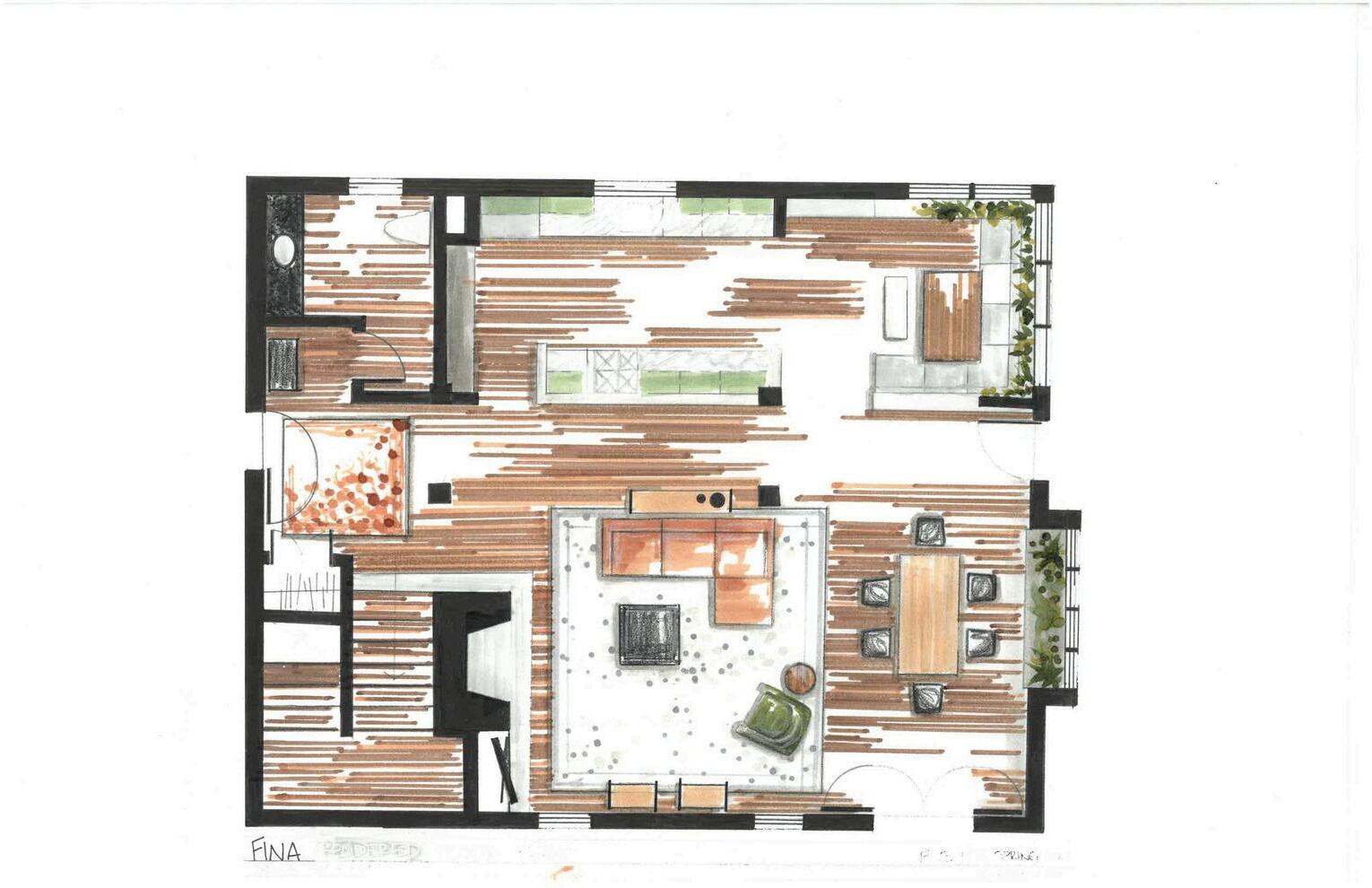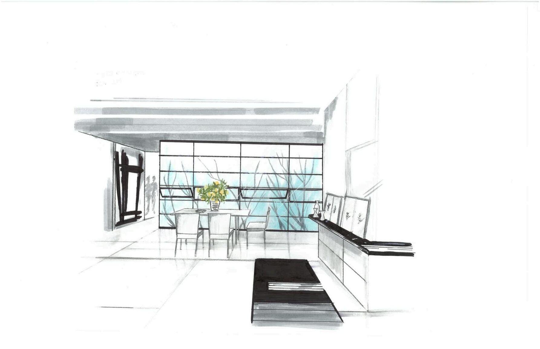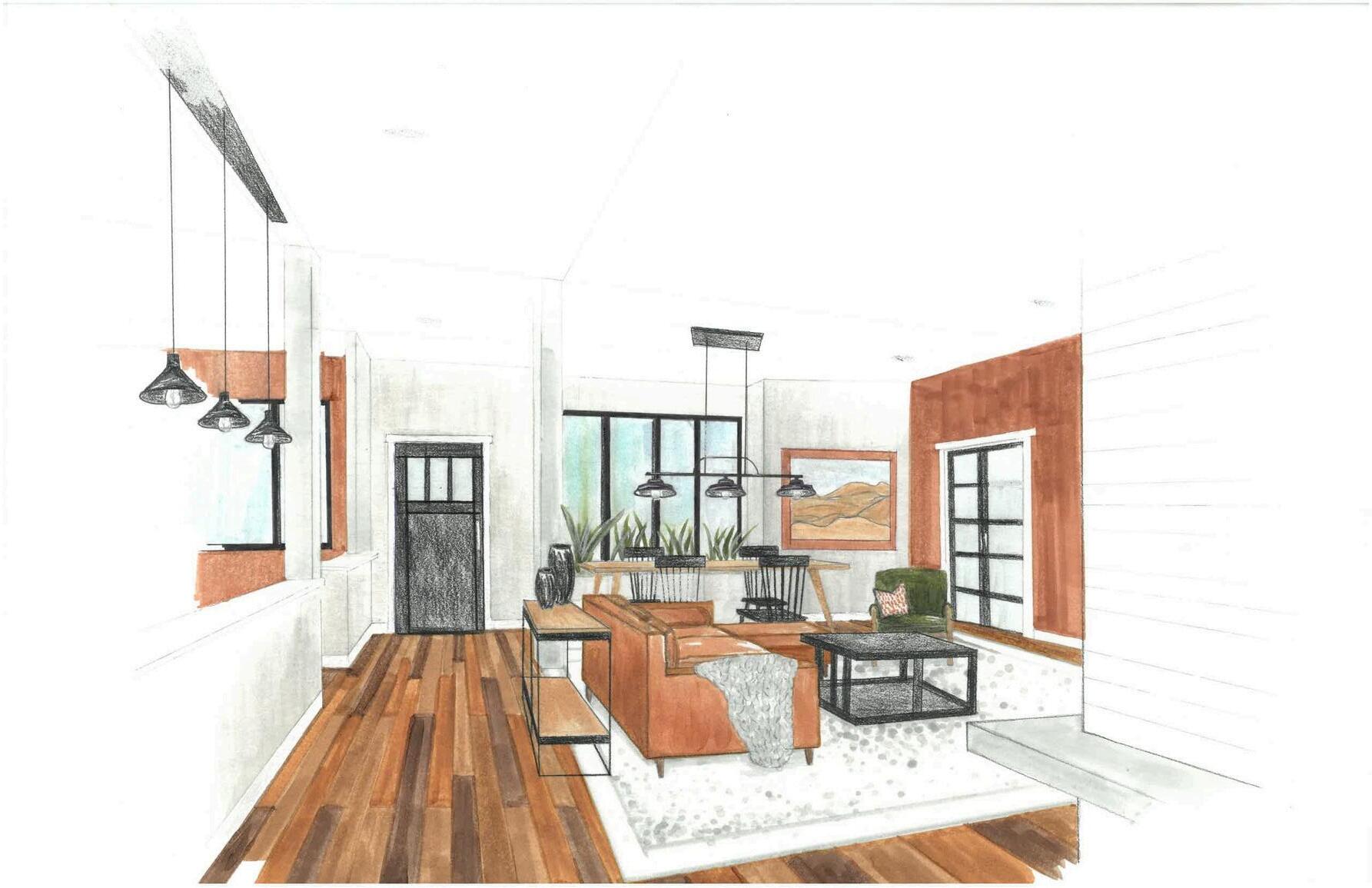 These hand rendered views and sketches showcase the importance of color & shadow while accurately representing what the interior of a space will look like.