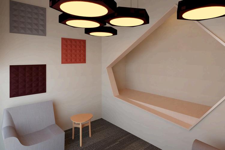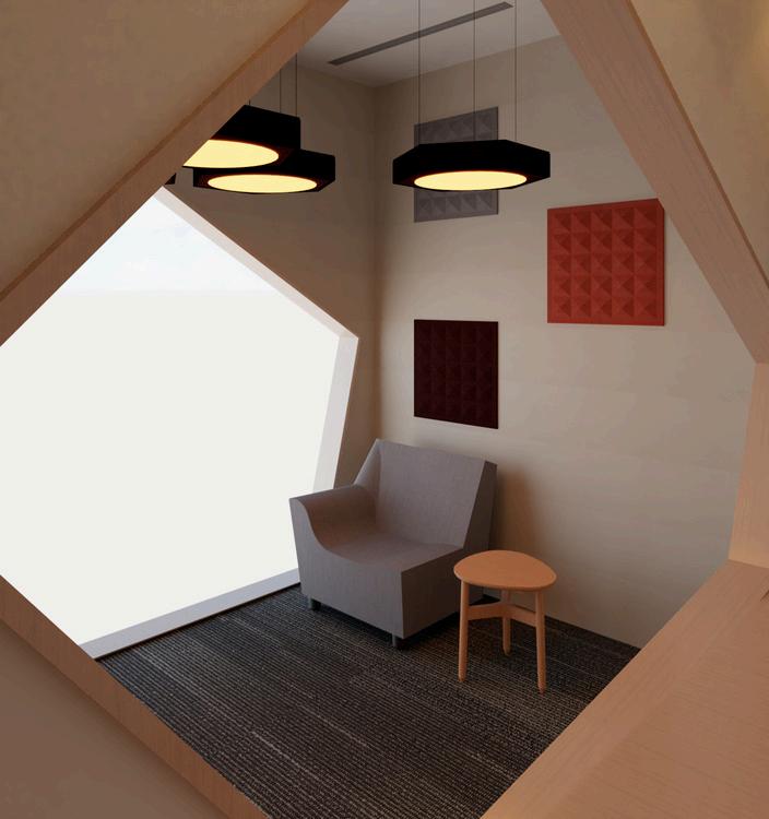 The main focus of this project was to create a acoustical breakout space that housed an air duct system, air vents, sprinkler system & pipes. 7