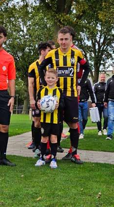 Om 14.30 uur mocht ik samen met iedereen het veld oplopen. Ik mocht de bal dragen, helpen met tossen (helaas won de tegenpartij) en daarna mocht ik iedereen een handje geven.