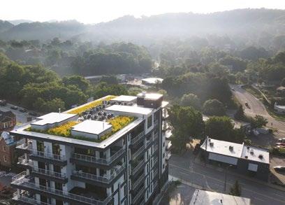 The City of Asheville requires stormwater management measures, and the green roof helped the project meet those federally mandated requirements. This green roof is a permanent stormwater control measure that reduces runoff volume and rate, as well as, pollutants and flooding. By using a green roof, the client avoided an underground stormwater containment system and was able to use that space for underground parking. After the City approved the project, we designed and proposed a dual-media, layered green roof system to maximize the stormwater benefit. As for the results, they are tremendous! We believe the site has less stormwater runoff than predevelopment, even though the building footprint was maximized.