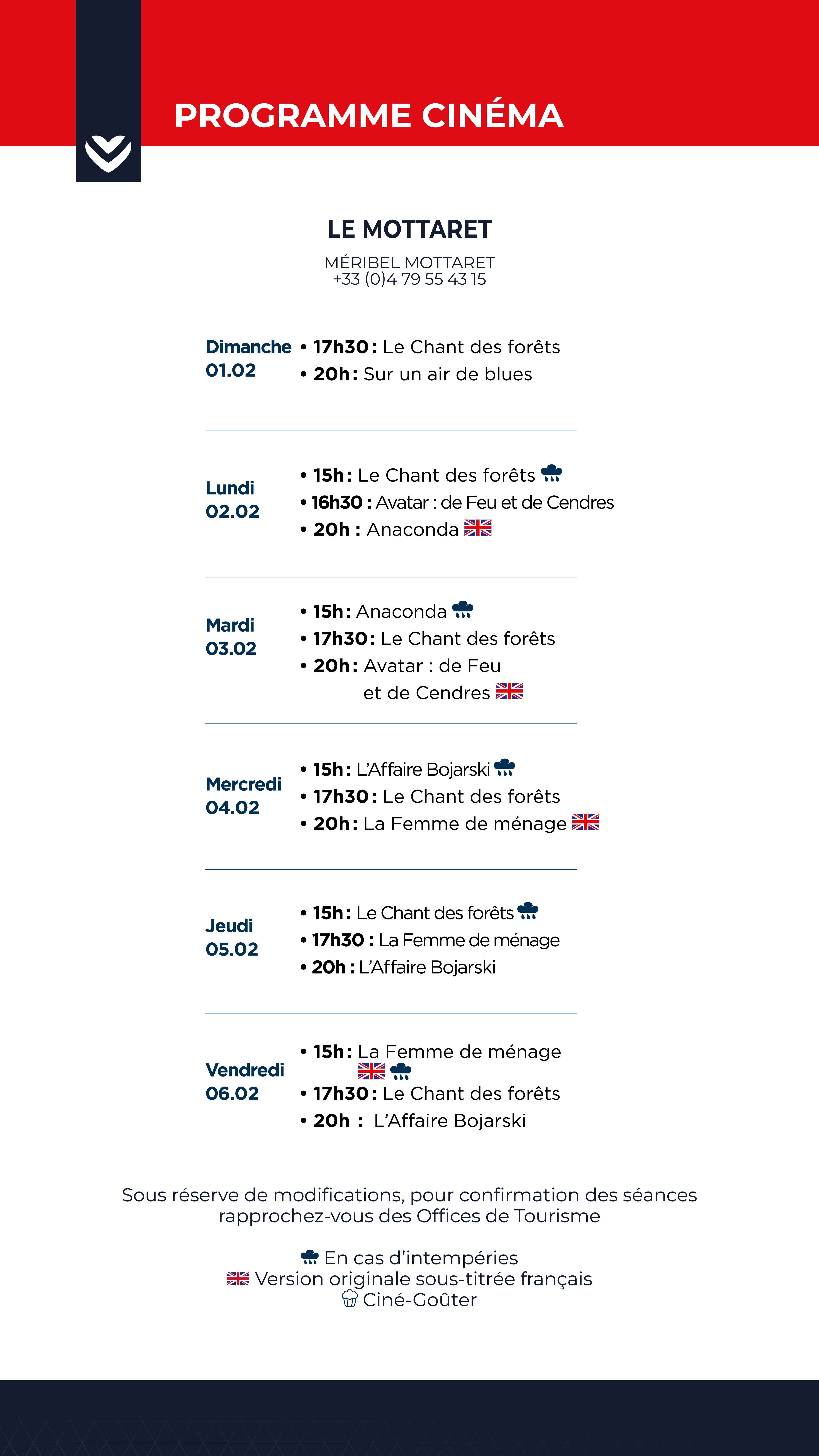 4625 route de l'Altiport - Méribel - Centre +33 (0)4 79 08 61 33 www.ac-meribel.com 9am-5pm every day