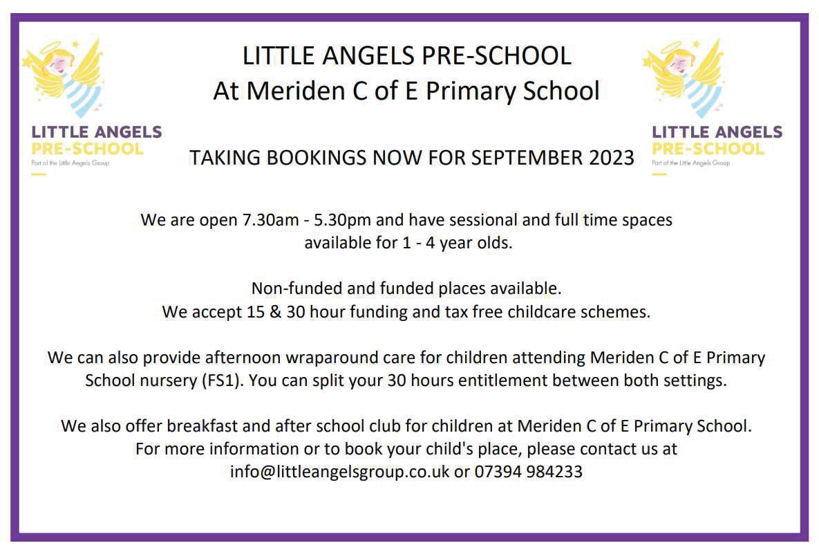 Meriden Library 10-11am 01676 522717