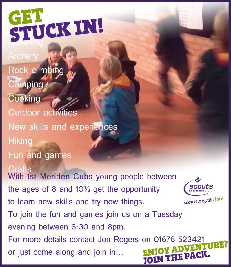Meriden Scout Group Gerry Russell 01676 522666