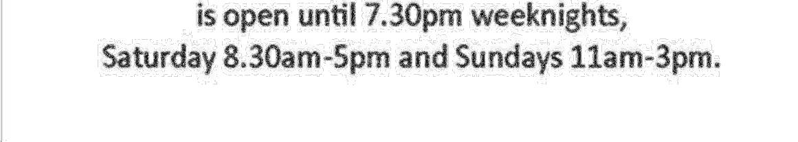 to the public from 8.00am – 2.00pm week days and now until 3.30pm Saturday & Sunday