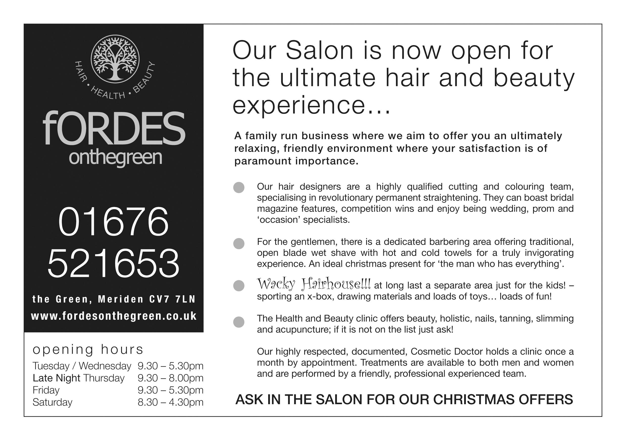 By the time you read this our tree should be in place and, I hope, giving pleasure to all who see it. As ever we will be able to dedicate a light to those who are no longer with us or just far away at this time, in aid of Macmillan Cancer Support (261017). Dedication forms will be available from:Meriden Tea Rooms, Spar Shop, NewsExpress, Lloyds, Bull’s Head and Blitz.
