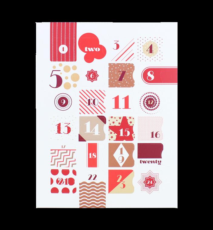 Choose from 16 outer advent box designs in portrait or landscape. Both options are the same size, have 24 doors and feature a stand/hanger on the back profile. All advents can be combined with any of the 3 inner component options.