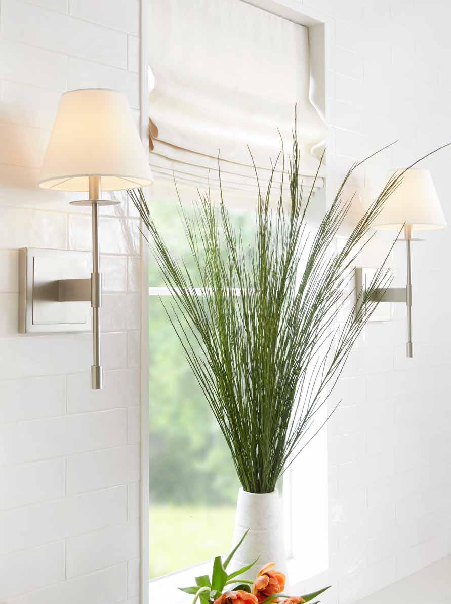 KUBEL WALL MOUNT IRON | WHITE LINEN SHADE SATIN NICKEL FINISH