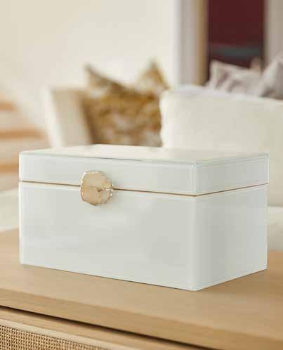 AGATE STONE | GLASS | WOOD WHITE FINISH L 14 X W 8.5 X H 7.25