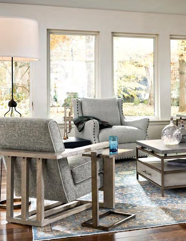 TUCKER SOFA 727501-781 / 80w x 39d x 35h FINLEY ACCENT CHAIR 682506-650 / 30w x 31d x 32h CHANDLER COCKTAIL TABLE 740801 / 52w x 23d x 18h CHANDLER END TABLE 740802 / 28w x 22d x 25h CHANDLER CONSOLE TABLE 740803 / 84w x 12d x 34h UniversalFurniture.com 76