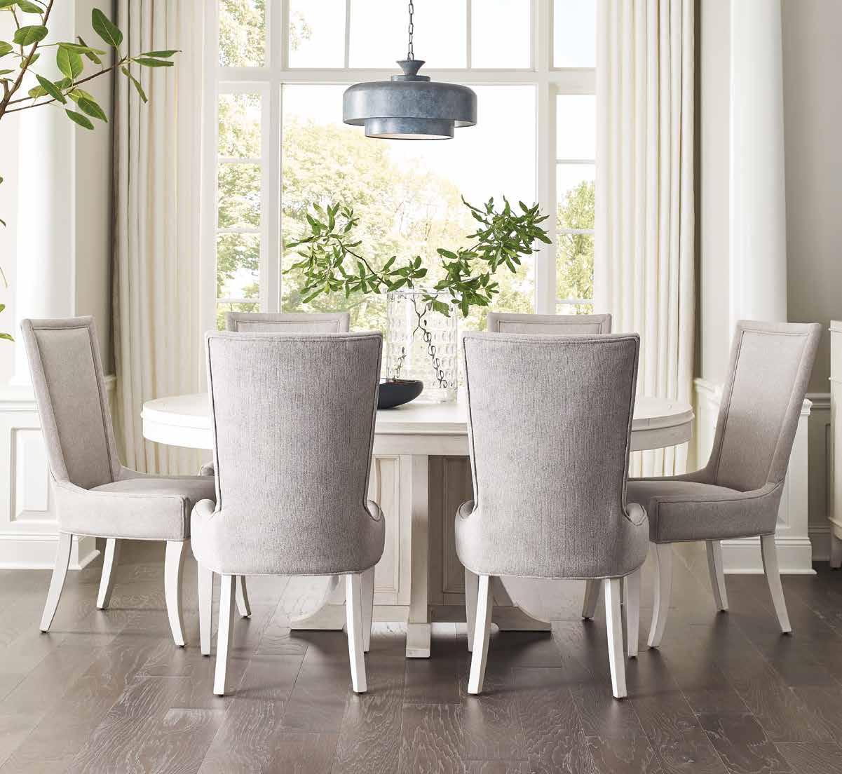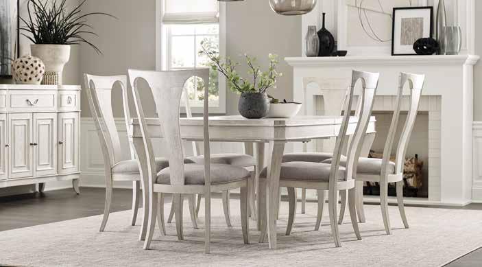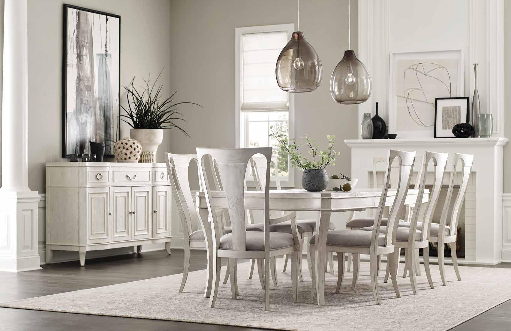 266-744 Carissa Leg Table Table, 266-857 Emelie Server, 266-636 Nevin Side Chair, 266-637 Nevin Arm Chair