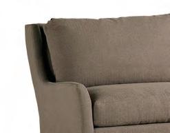 Modern Lawson form. Inset T-cushion seat. Two loose back pillows. Tight tailoring and shape all around.