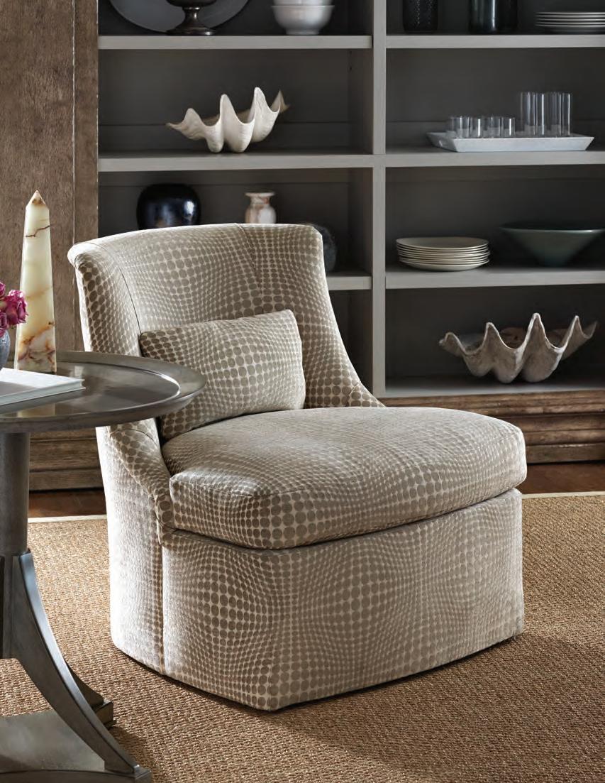 Serpentine top rail. Tight back over single boxed seat cushion. Dressmaker skirt. Available with or without swivel.
