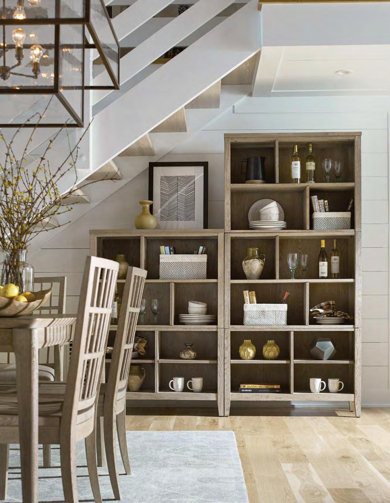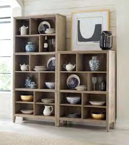 Two adjustable wood shelves, removable center partition, adjustable levelers, removable top layer allows for secure stacking of 939-590 on top, includes two dowels to connect upper and lower cases, size of each shelf opening: W17 D12-5/8 H8-5/8 Pages 25, 26/27, 30/31