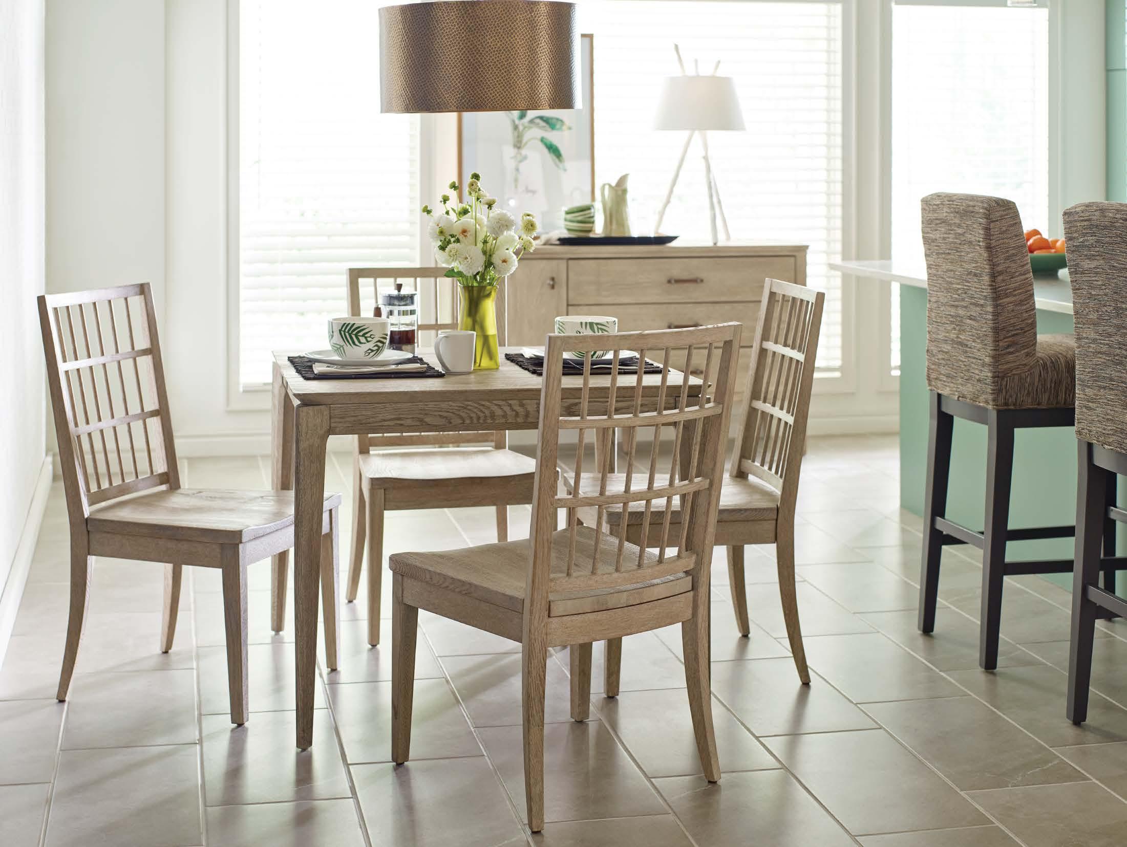 Above (small): 939-705 Summit Small Dining Table, 939-638 Symmetry Wood Side Chair, 939-830 Asymmetry Cabinet Small