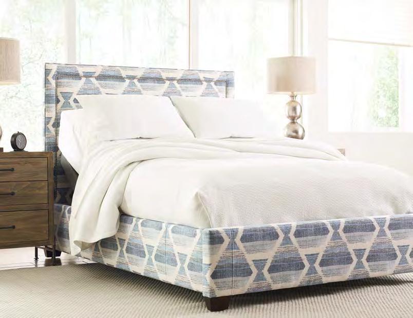 Above: Mia Upholstered Bed body fabric: Taran Chai. Shown with Kincaid Mill House Collection nightstand 25 24