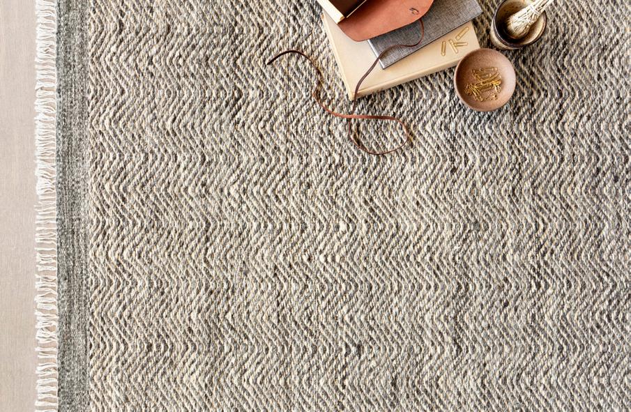 Hand-loomed in India of viscose, wool, and nylon, the Ollie Collection offers a series of understated neutrals complemented by a feel-good texture. Ollie is also GoodWeave certified, ensuring our commitment to ethical production and the support of weavers’ communities. $$$ $