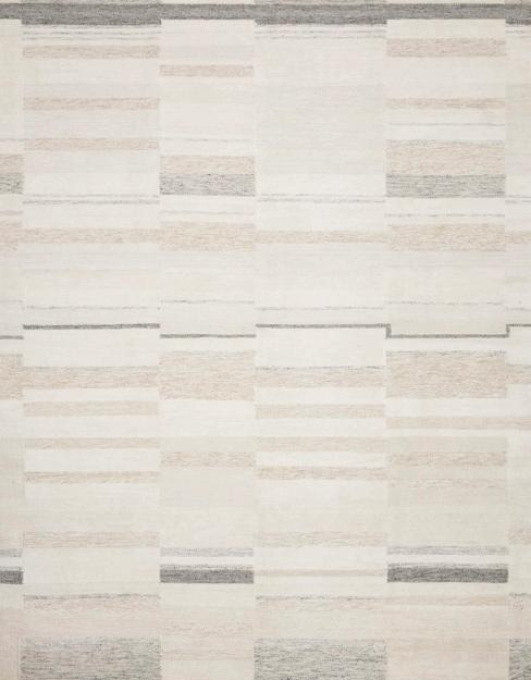 The Moore Collection for Carrier and Company × Loloi is a sophisticated area rug with a subtle interplay of higher, lighter tone pile above a deeper-toned base pile. Abstract geometric patterns in airy, neutral palettes create a sense of freshness and textured dimension that the design firm is known for, especially against the rug’s striped base. Hand-knotted of wool and cotton for softness and durability, Moore is also GoodWeave certified, ensuring our commitment to ethical production and the support of weavers’ communities. Made in India. $$$$