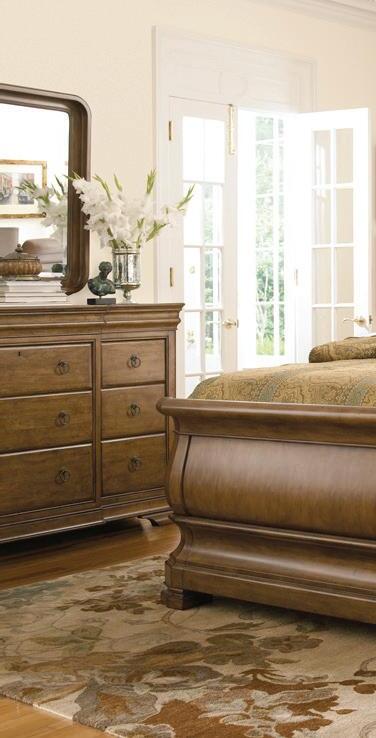 Crafted primarily of alder solids and selected alder veneers // English dovetail drawer construction // Dust bottoms // Stained and sealed drawer sides // Updated French styling // Distinctive ogee styled top frame on select cases