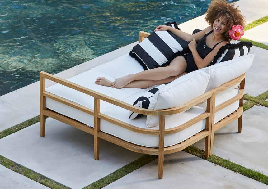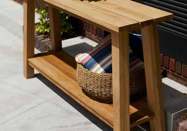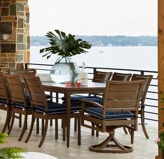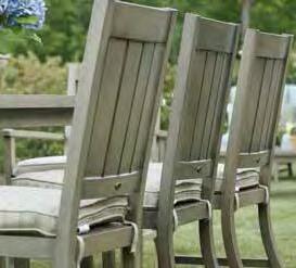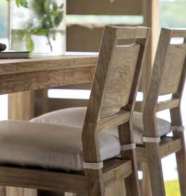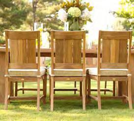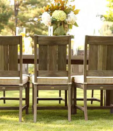 your teak with our teak care and maintenance products. Protector PNT-00360 Shield PNT-00361 Cleaner PNT-00359 teak care Patented Sofa cushions are available as 3-seat or bench cushions. cushion options ASHLAND TEAK ARM CHAIR 2892+FINISH 4,27 C767H+FABRIC (SEAT ONLY) W23.625” D25.75” H37.5” ASHLAND TEAK LOUNGE 2893+FINISH 4,27 C769P+FABRIC (DREAM) W33.125” D39” H37” ASHLAND TEAK ADIRONDACK OTTOMAN 2891+FINISH 4,27 C837+FABRIC W26.75” D28.75” H12.75” ASHLAND TEAK ADIRONDACK 2890+FINISH 4,27 C768H+FABRIC W30.625” D33.375” H37.5” ASHLAND TEAK SOFA 2895+FINISH 4,27 BENCH: C843P+FABRIC (DREAM) 3 SEAT: C441P+FABRIC (DREAM) W73.125” D39” H32.75” Avondale and Farm Teak dining collections shown with: RECTANGULAR TEAK FARM TABLE HAS UMBRELLA HOLE 2842+FINISH 4,27 W77.125” D42.125” H30.25” AVONDALE TEAK SIDE CHAIR 2942+FINISH 4,27 C224H+FABRIC (SEAT ONLY) W20.5 D22.5 H35.75” ASHLAND TEAK SIDE CHAIR 2896+FINISH 4,27 C845H+FABRIC (SEAT ONLY) W18” D23.5” H34” CROQUET TEAK END TABLE 2836+FINISH 4,27 W24.25” D24.25” H22.875” CROQUET TEAK RECTANGULAR COFFEE TABLE 2841+FINISH 4,27 W48” D26.75” H16.75”