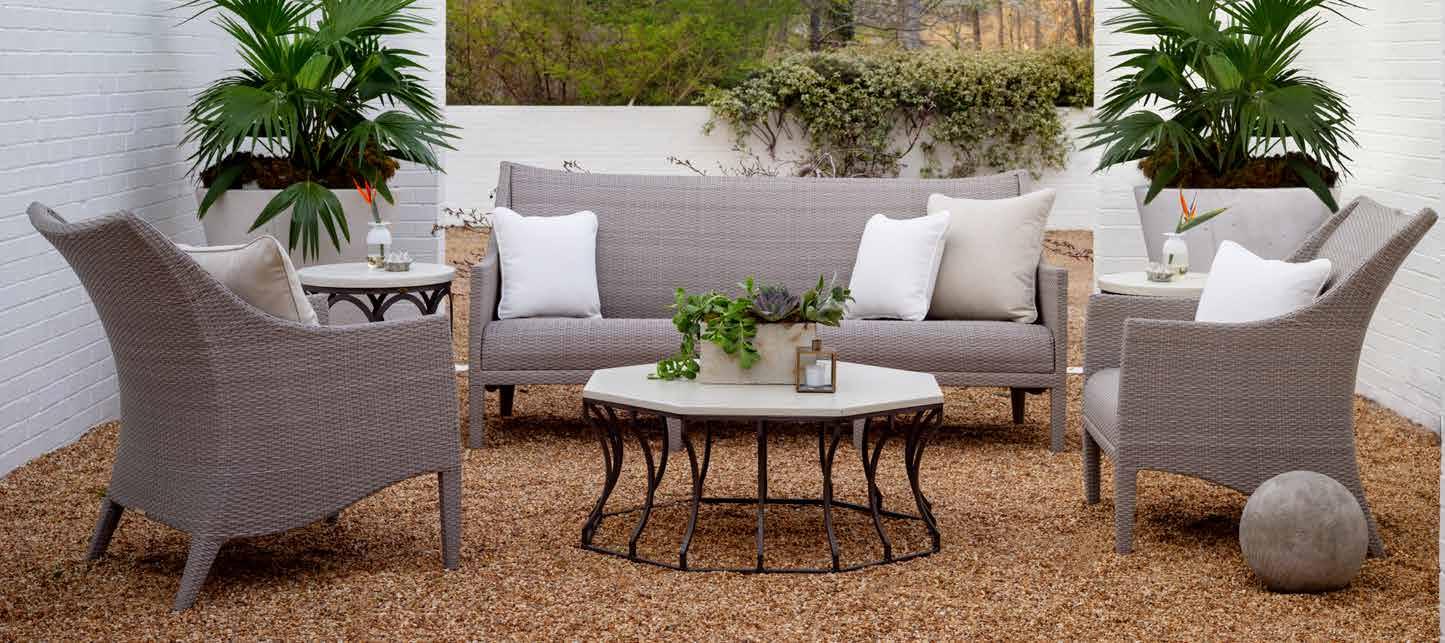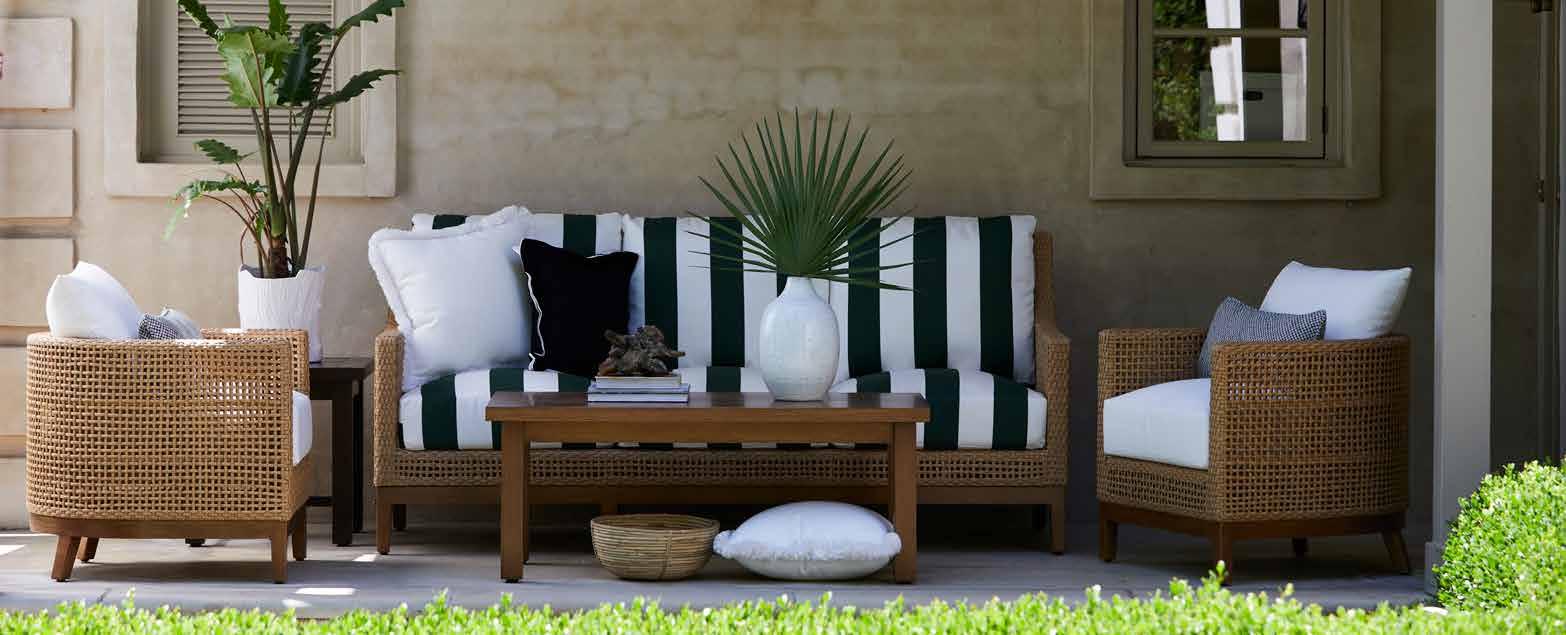 The durability of our patented resin wicker, with cushions built into the frame. Constructed using resin wicker upholstered around quick-dry reticulated foam, hand woven over our heavy-gauge aluminum extrusions with an architectural-grade powder finish using nanoceramic pre-wash technology.