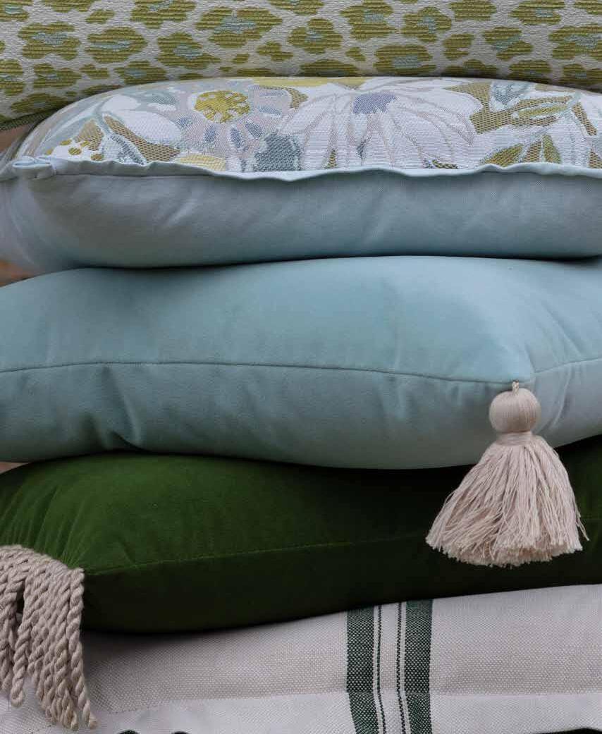 WENDY JANE CREATES ONE-OF-A-KIND DESIGNS BY MIXING AND PIECING OUR PATTERNED FABRICS TOGETHER. THESE STYLISH DESIGNS CREATE A LAYERED LOOK THAT ADDS A DIMENSION TO YOUR SPACE, INDOORS AND OUT.