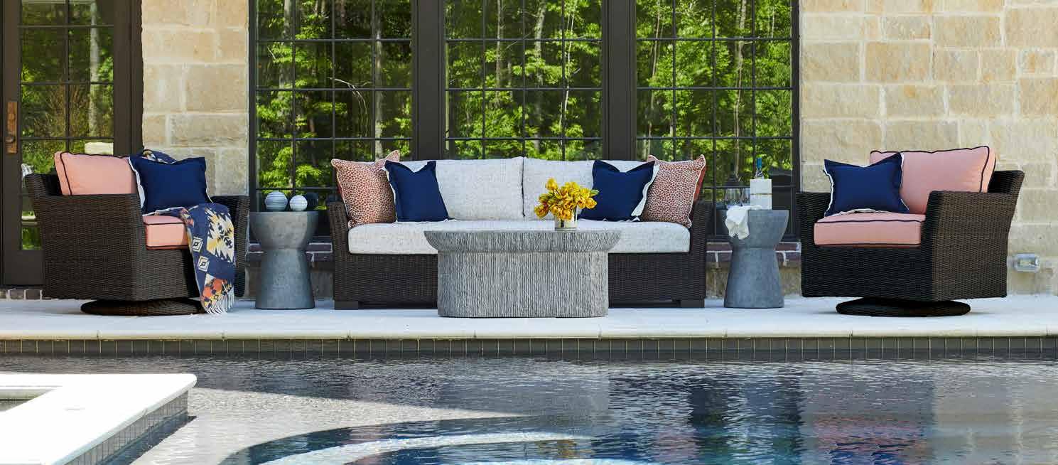 Exclusively designed and colored outdoor performance fabrics including Sunbrella® solution-dyed acrylics and fabrics using only the finest materials and technology for longevity outdoors.