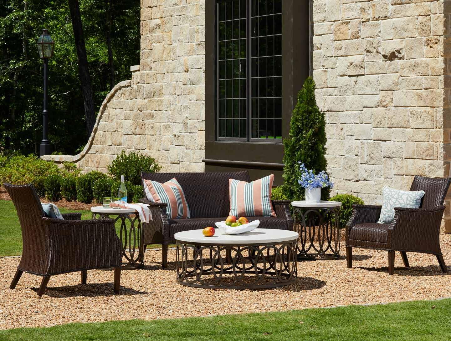 The most realistic and extensive UV-resistant protocol in the industry, resin wicker is guaranteed to not experience any significant color change for 5 years. Our ultra-realistic resin varies in color and texture, making each piece unique. Available in resin, vinyl or polyethylene, all wicker is memory tested to 50,000 compressions, and is hand-woven over our steel-reinforced heavy-gauge aluminum extrusions with a tripleantique hand-applied finish using nano-ceramic technology.