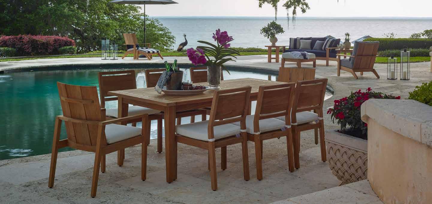 The finest teak in the world was sought out to design our wooden furniture pieces. Teak Collections feature sustainably-harvested high- quality teak frames with mortise-and-tenon construction. All of our Teak Collections are available in Natural Teak and our Oyster Teak finish, which was designed to mimic the silvery gray patina teak develops as it ages.