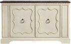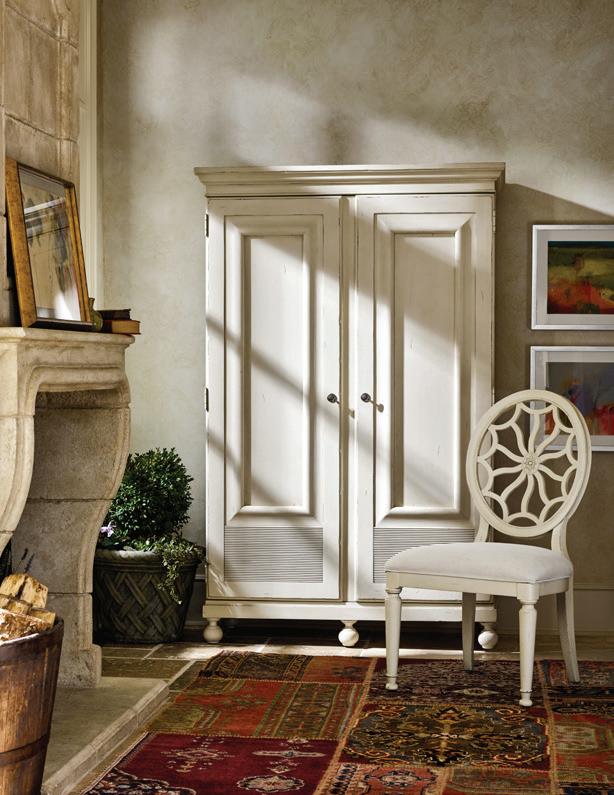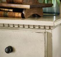 FINISH Crafted of birch veneers in a lightly distressed Summer White nish.