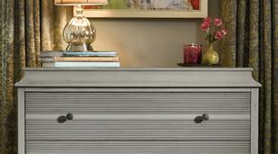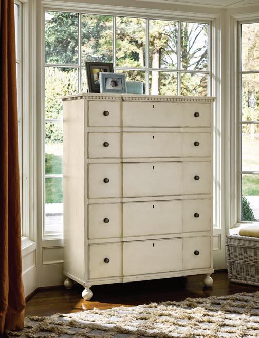 Birch Veneers // English dovetail drawer construction Stained and sealed wood drawer sides // Cedar drawer bott oms in select bedroom cases Summer White, Metal and Grey Lake fi nishes