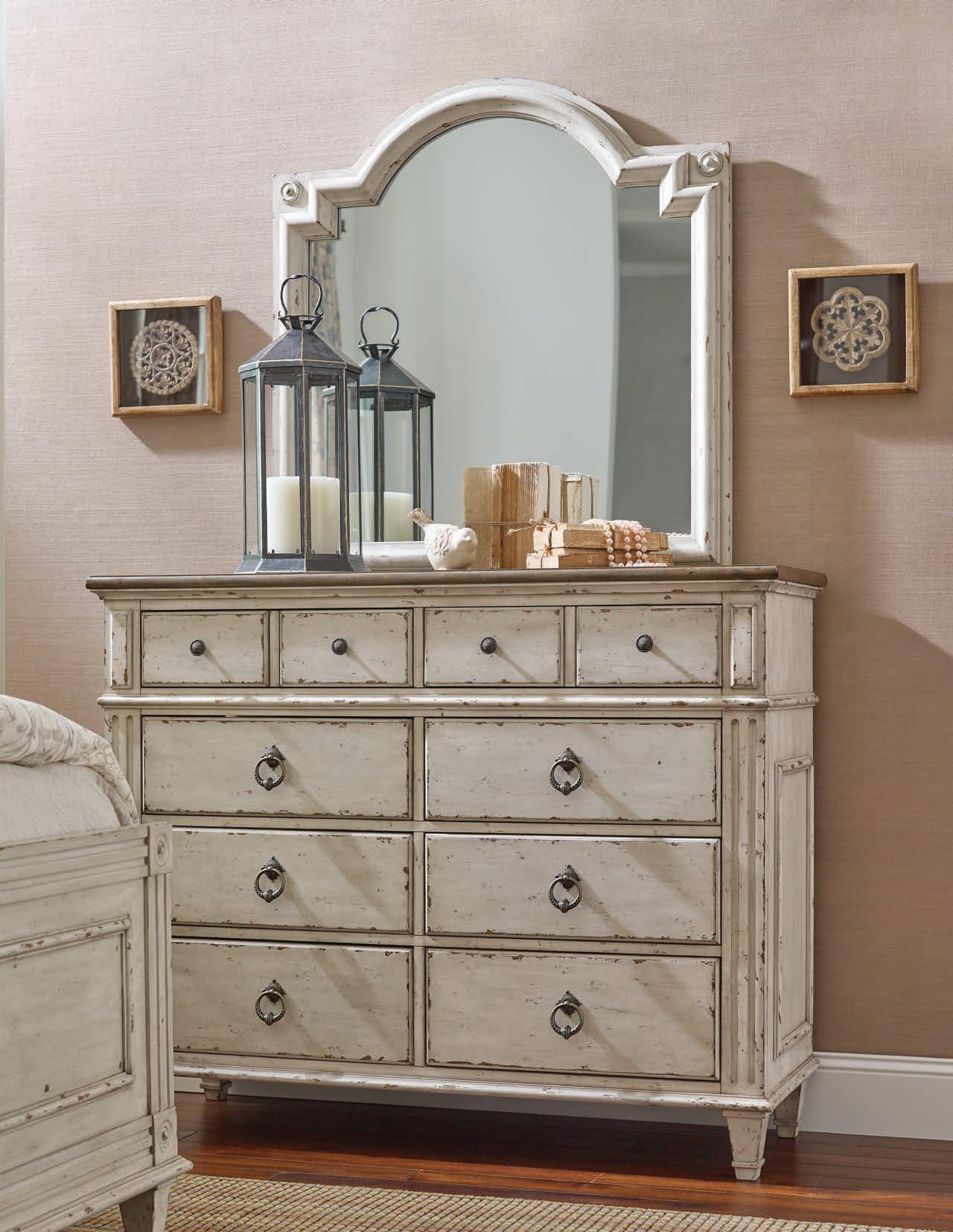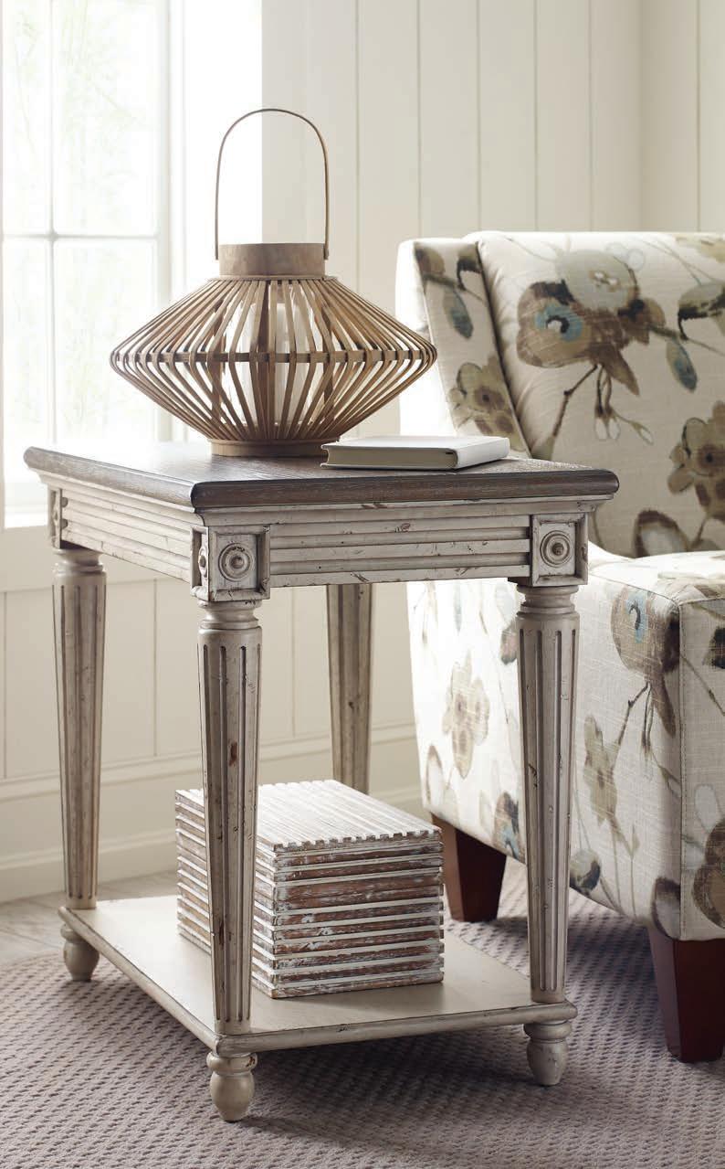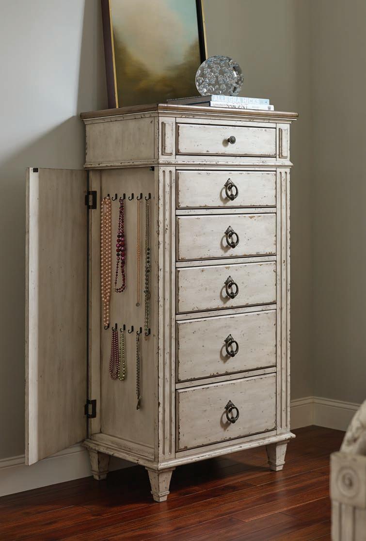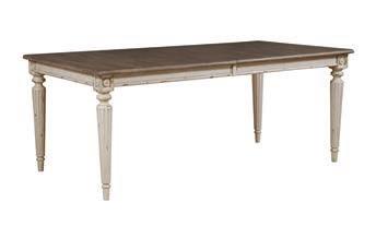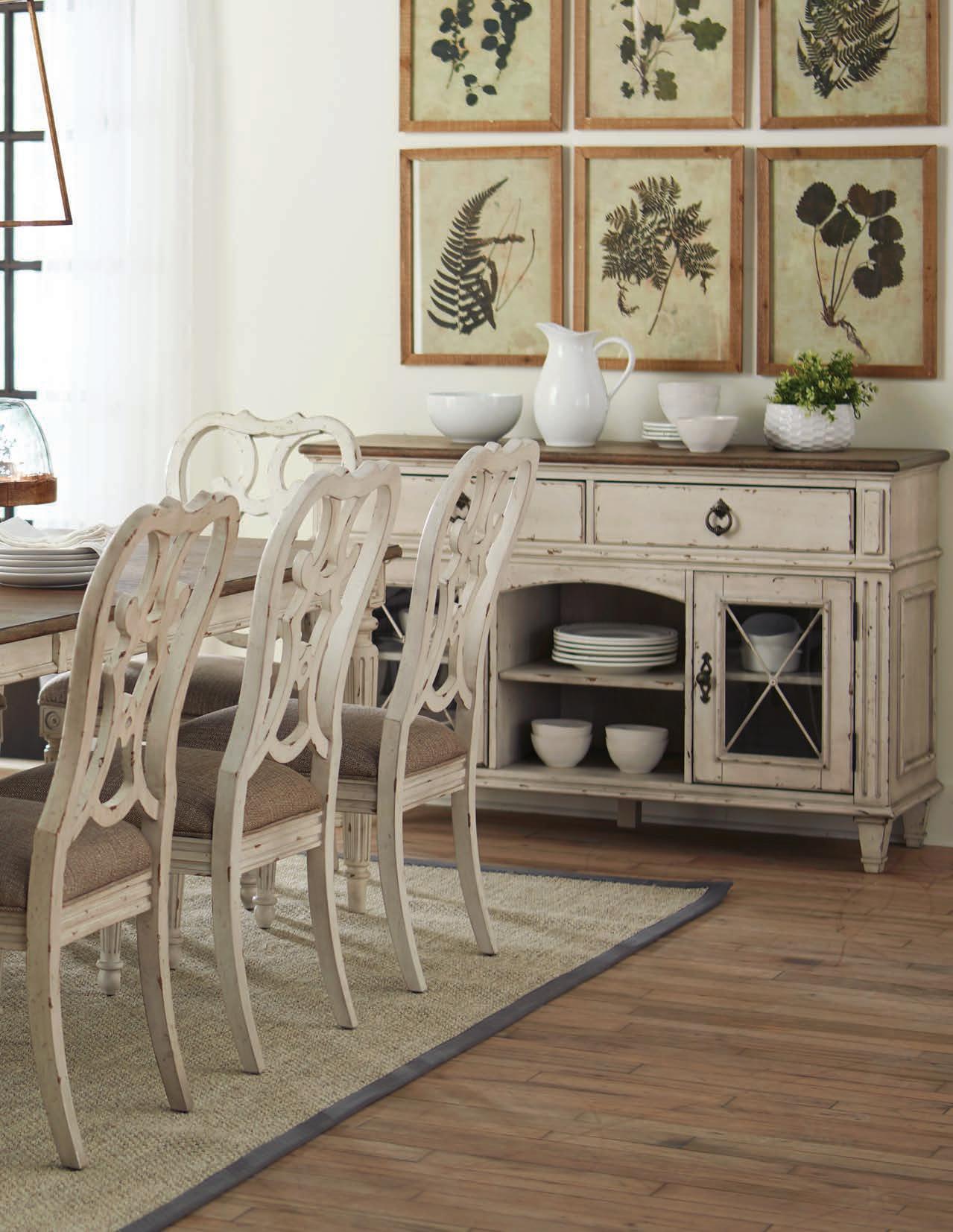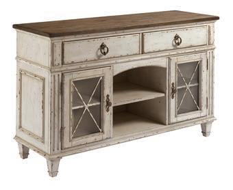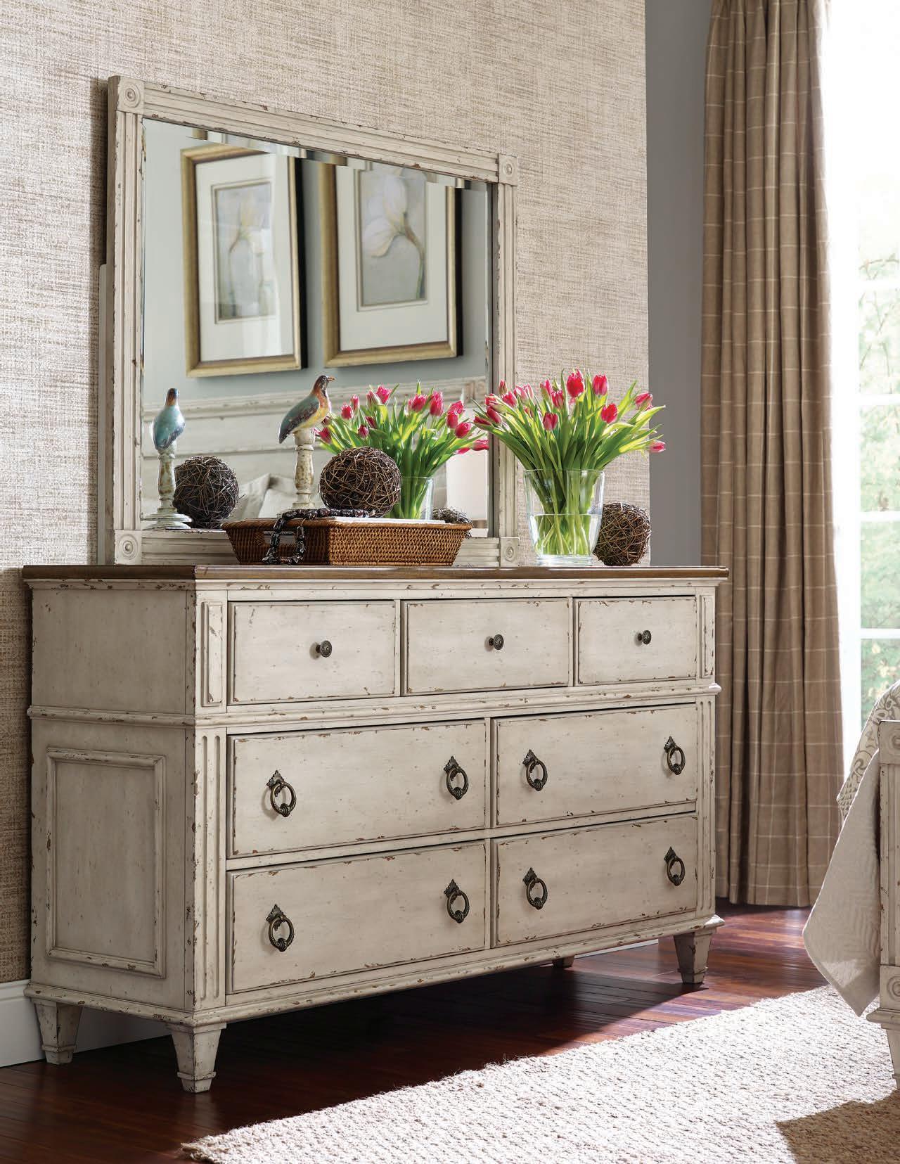 Casual European country homes are the inspiration for Southbury. Working with different textures and finishes create a look and feel of old world treasures. Design inspirations include architectural elements such as fluted posts, picture frame moldings, subtle shapes and tapered legs. The final touch of the case is the beautiful dropring hardware. To achieve a time worn look, we use Wirebrushed Oak veneers finished with a glaze over antiqued chipped paint . Bedroom features include: soft close drawer guides, a flip down pullout drawer for component storage and a lingerie chest with hidden storage. Southbury offers flexible dining room pieces that can fit into many areas, such as the 50” round table that will seat 4-8 people comfortably. A graceful dining chair with beautiful turned and fluted legs with a scroll back and an upholstered seat adds comfort and style to any home decor.
