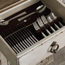 Two doors, two drawers, three adjustable wood shelves, center foot, brown silverware insert in top right drawer, hand holds in back of case, adjustable levelers pages: 16/17, 18/19, 20/21