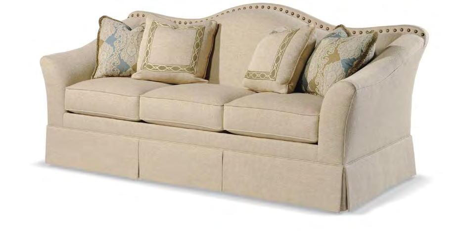 Semi attached back cushions/(2) 19” Throw pillows/9” Kick pleat skirt/Kingsdown mattress