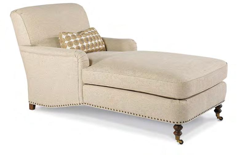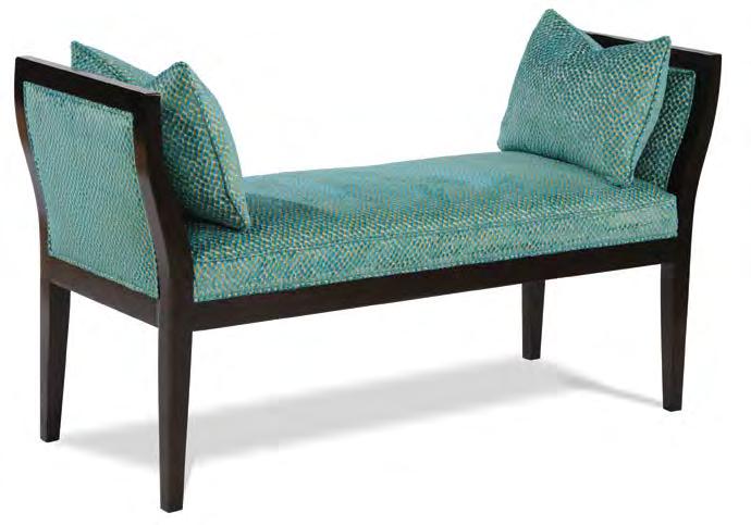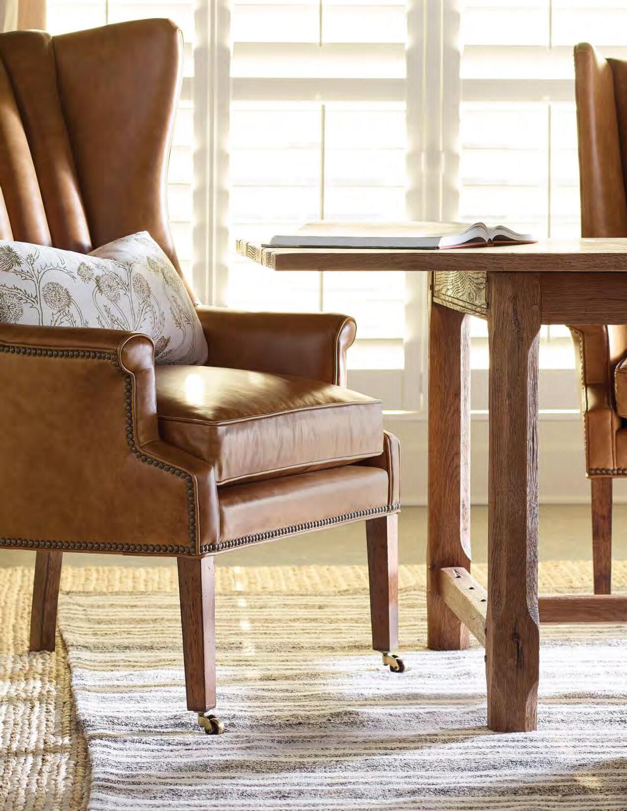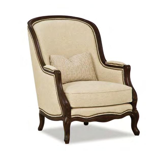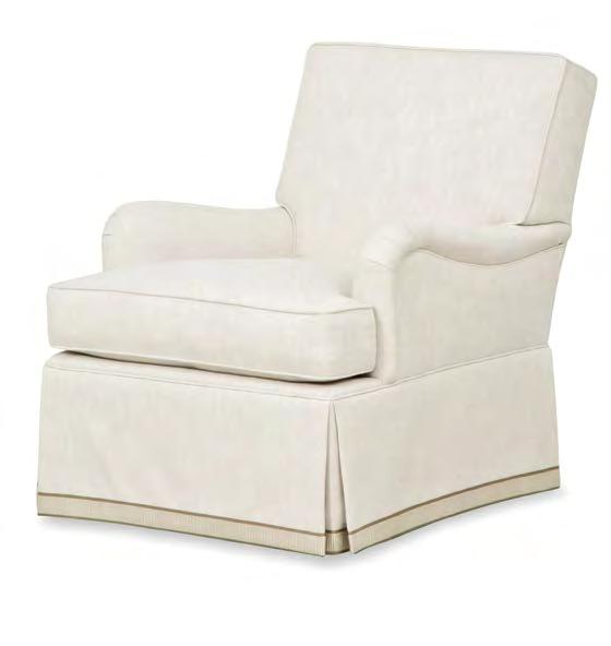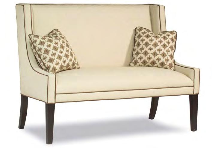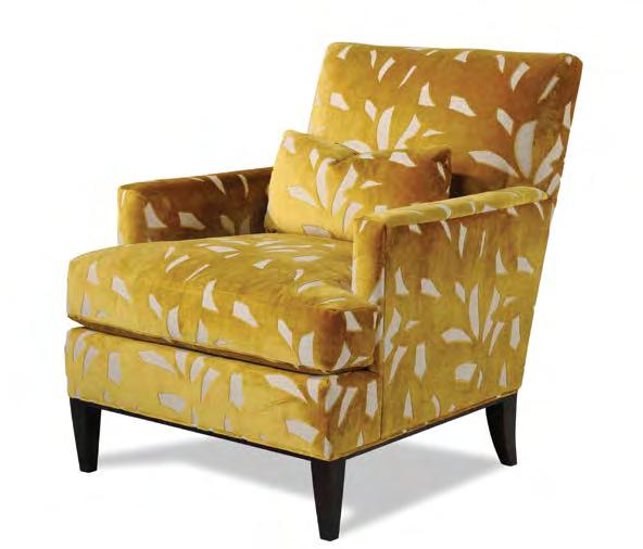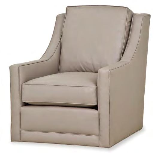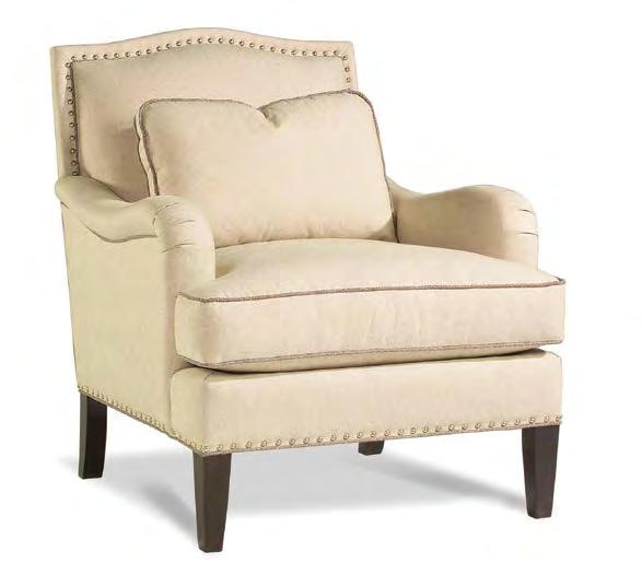 Options Shown: Contrasting leather welt on chair. Contrasting fabric on Throw pillows. Leather gimp around base on chair with 3/4” nails 3/4” apart.