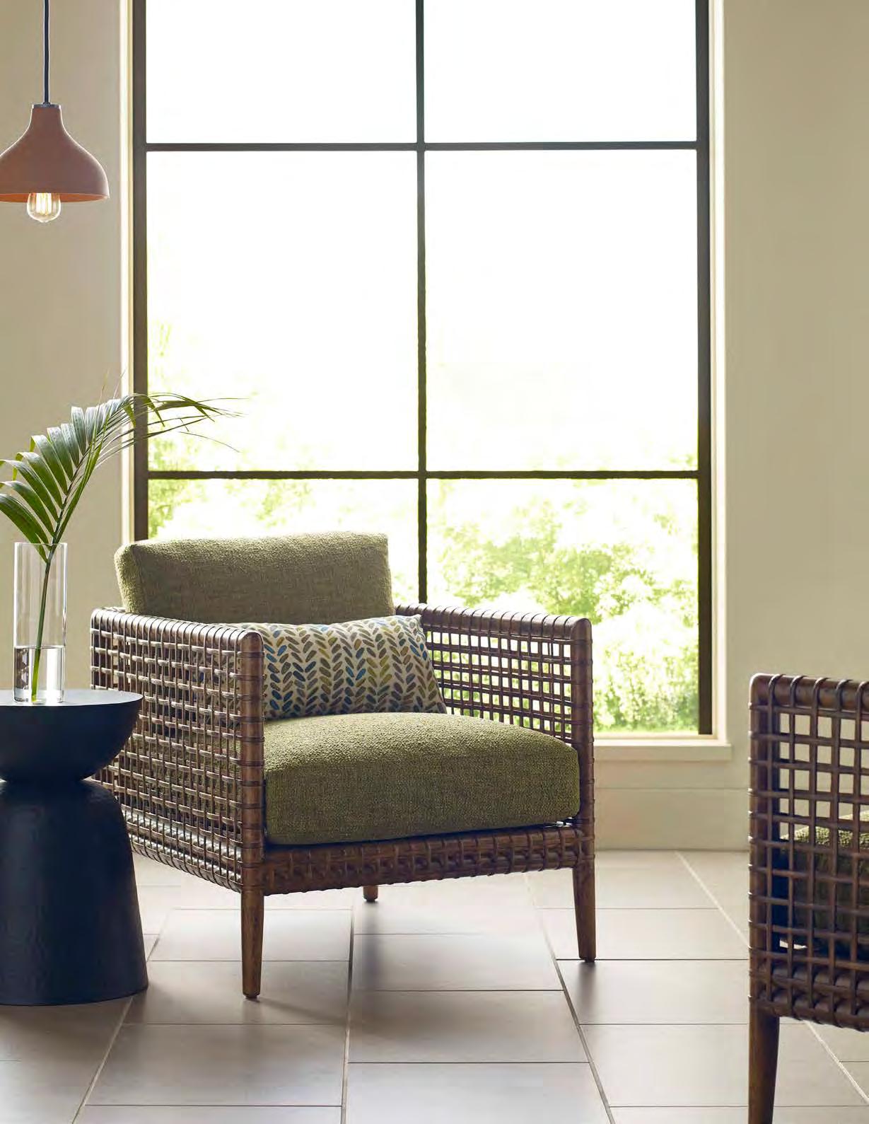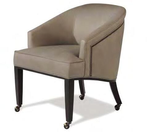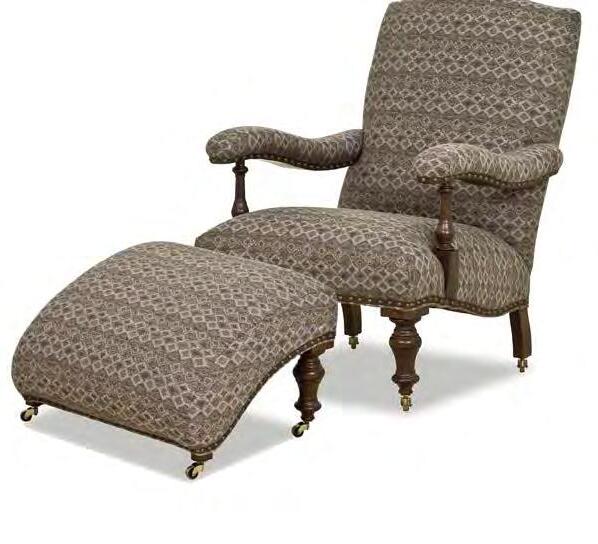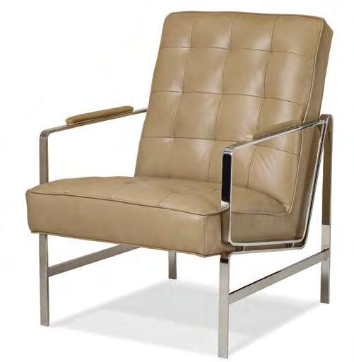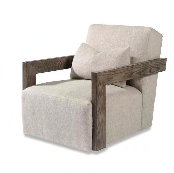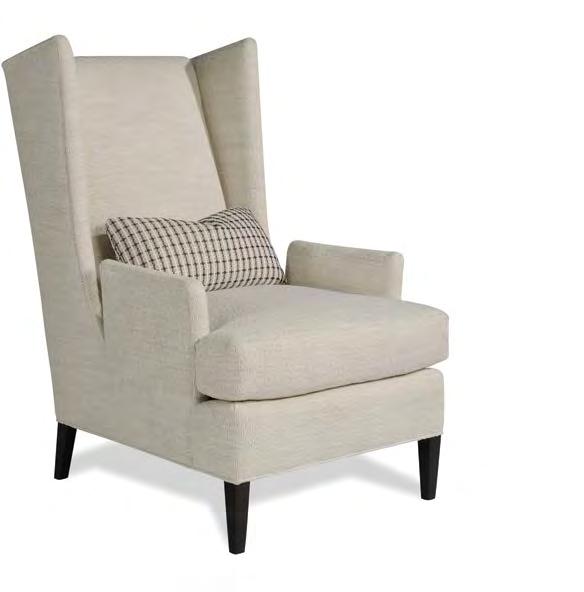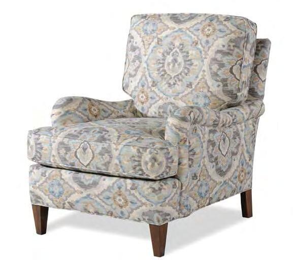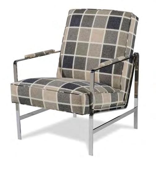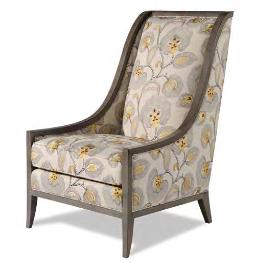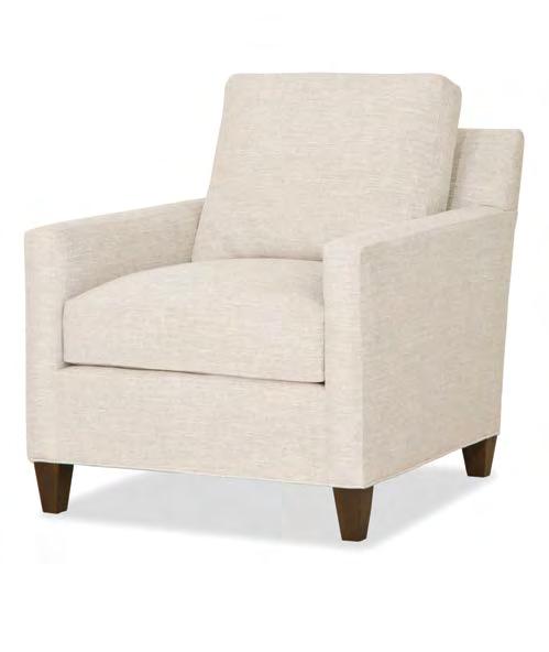 Options Shown: Contrasting leather welt on chair. Contrasting fabric on Throw pillows. Leather gimp around base on chair with 3/4” nails 3/4” apart.