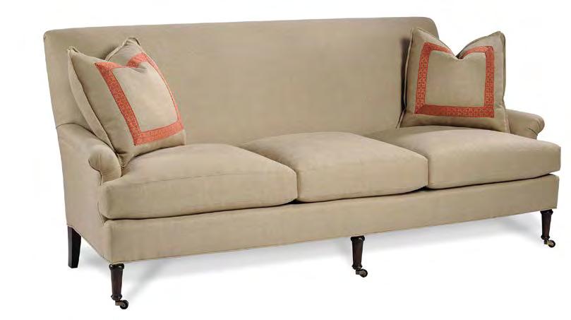 Loose back cushion/(2) 19” Throw pillows/Upholstered to floor/Casters on front