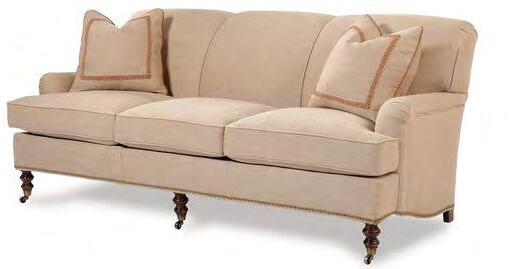 Options Shown: Contrasting fabric on 19” Throw pillows. 1/2” Old Gold nails double row on arm borders and single row on base.