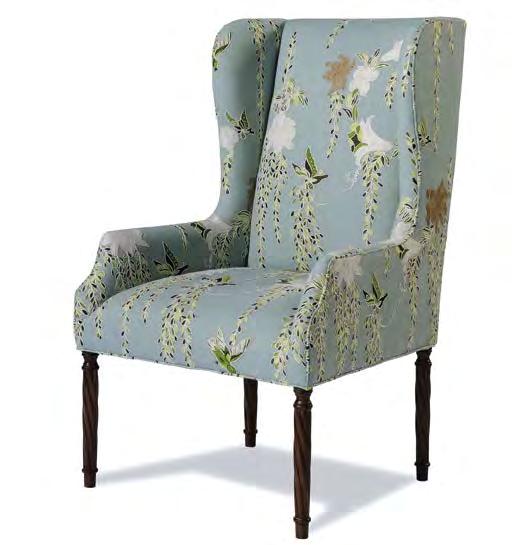 Options shown: Contrasting fabric on kidney pillow. Contrasting welt on chair. Available in leather. No nails available. Kidney pillow standard.